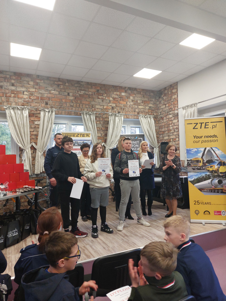 Uczniowie klas szóstych – Kuba, Antek i Mateusz zwyciężyli w szkolnych eliminacjach do Turnieju Bezpieczeństwa w Ruchu Drogowym i wzięli udział w tymże konkursie na etapie powiatowym, organizowanym przez MDK Jordan. Uczniowie siemianowickich szkół musieli napisać niezwykle trudny test wiedzy, zaprezentować umiejętności związane z pierwszą pomocą, przejechać miasteczko zgodnie z zasadami ruchu drogowego oraz pokonać wymagający tor przeszkód. Nasi rowerzyści nie zajęli miejsca na podium, ale godnie reprezentowali naszą szkołę. Zmotywowani i żądni zwycięstwa powalczą w przyszłym roku!
