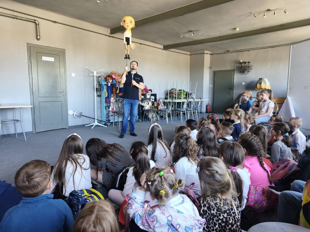 Po spektaklu uczniowie wzięli udział w ciekawej lekcji teatralnej pt. „Jak ożywić lalkę”. Podczas zajęć poznali tajniki pracy aktora-lalkarza oraz dowiedzieli się, w jaki sposób nadaje się życie teatralnym postaciom.