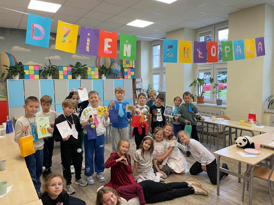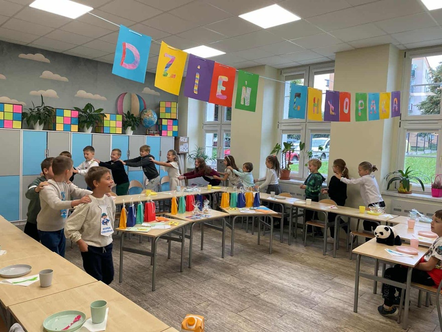Z okazji Dnia Chłopaka dziewczynki z klas IIa i IIb z wielkim zaangażowaniem przygotowały dla swoich kolegów różnorodne niespodzianki. Uczennice klasy IIb 🎈 udekorowały salę kolorowymi girlandami, tworząc radosny, świąteczny nastrój, a także przygotowały pyszne babeczki 🧁, którymi później poczęstowały chłopców.