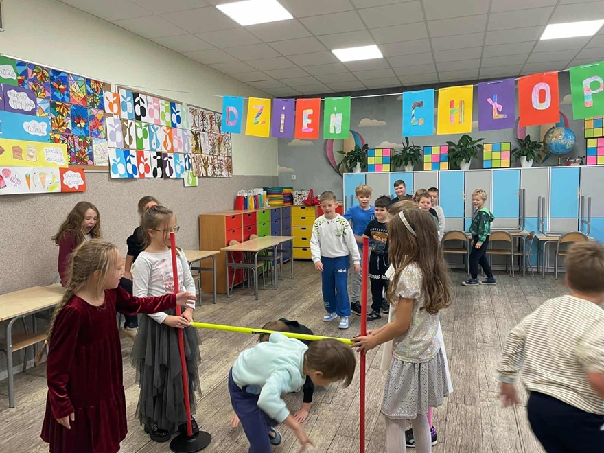 Dziewczynki z obu klas własnoręcznie wykonały krawaty 👔 oraz kartki z życzeniami 💌, które wręczyły swoim kolegom. Nie zabrakło też wspólnej zabawy, ponieważ dziewczynki przygotowały dla chłopaków zajęcia sportowe 🏃♂️. W klasie IIa dodatkowo uczniowie przebijali balony 🎈 z ukrytymi zadaniami, co wywołało mnóstwo śmiechu i radości 😂.