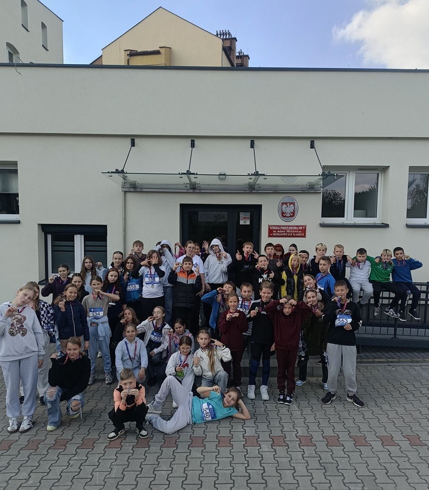 03 października Siemianowicka Piąteczka po raz drugi wzięła udział w imprezie biegowej Silesia Maraton „Szybciej, wyżej, mocniej….”. Na starcie stanęło 52(!!!) uczniów z naszej szkoły, w całej imprezie wzięło udział około 1000 biegaczy ze szkół podstawowych z województwa Śląskiego. Brawa dla wszystkich za start, walkę i ukończenie dystansu. Największe gratulacje i brawa należą się Mateuszowi Niekowalowi z klasy 6 – trzecie miejsce w swojej kategorii wiekowej na Śląsku, oraz Paulinie Jarczyk z klasy 8 – czwarte miejsce w swojej kategorii wiekowej na Ślasku. Niemniejsze brawa kierujemy także dla uczennic z klasy trzeciej Łucji i Julki Iwaneckich, które bez żadnych obaw podjęły walkę z dużo starszymi koleżankami.