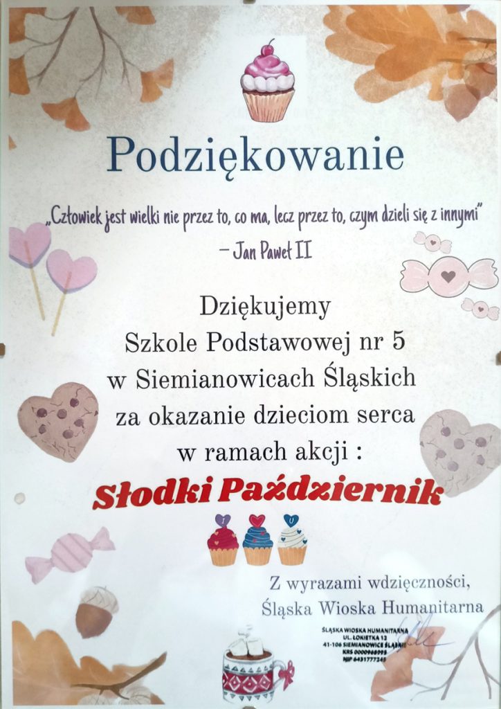 #SłodkiPaździernik #DomyDziecka #Wolontariat #Pomagamy #SzkołaZSerduchem #ŚląskaWioskaHumanitarna #SP5
