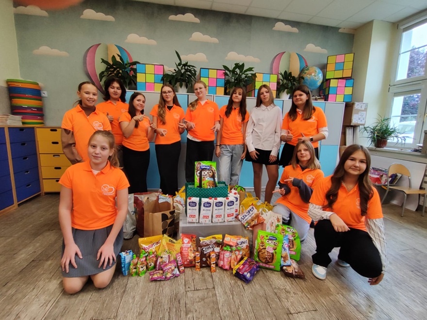Z radością informujemy, że dziś nasi szkolni wolontariusze przekazali zebrane dary – słodycze, mleko, płatki śniadaniowe oraz musy owocowe – do Fundacji Śląska Wioska Humanitarna. Dzięki tej inicjatywie, produkty trafią do dzieci z Domu Dziecka w Bytomiu, Dzieci Sodusiowej – Rodzinny Dom Dziecka oraz Szafranki Świetlica Środowiskowa, by choć trochę osłodzić im codzienność.