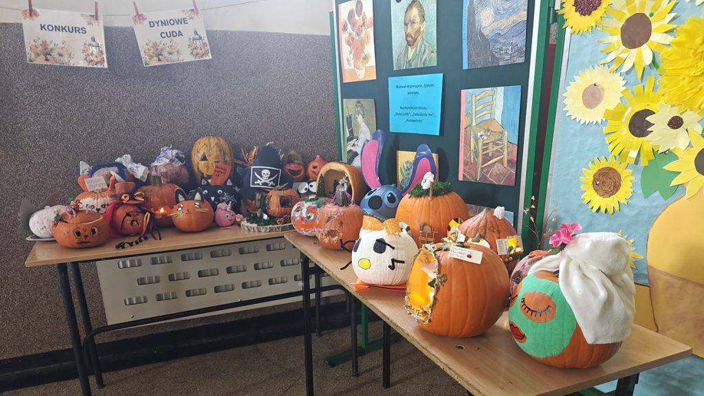 W październiku w naszej szkole odbył się jesienny konkurs „Dyniowe Cuda”, w którym uczniowie klas 1–3 mieli za zadanie wykonać pracę przestrzenną z dyni. Kreatywność i pomysłowość dzieci zachwyciły wszystkich – powstały prawdziwe dzieła sztuki! Na konkurs wpłynęły aż 34 piękne prace, co sprawiło, że wybór laureatów był wyjątkowo trudny.