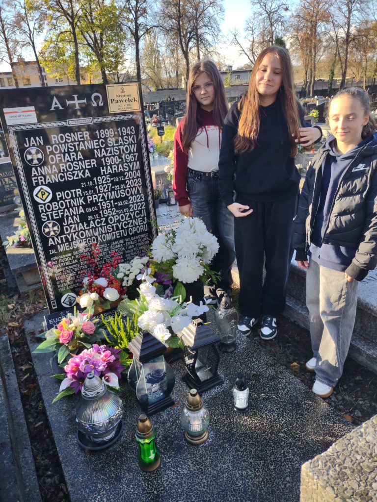 Dzień Wszystkich Świętych to okazja do uczczenia poległych bohaterów walczących o wolność naszego kraju. Składając kwiaty i zapalając symboliczny znicz ósmoklasiści uczcili pamięć poległych i pomordowanych funkcjonariuszy z komisariatu w Siemianowicach Śląskich. Klasa VIIa zapaliła znicze na grobach Powstańców Śląskich.