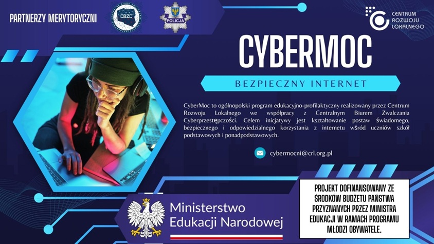 Projekt realizowany przez Centrum Rowoju Lokalnego pod patronatem Ministerstwa Edukacji Narodowej, Policji oraz Centralnego Biura Zwalczania Cyberprzestępczości