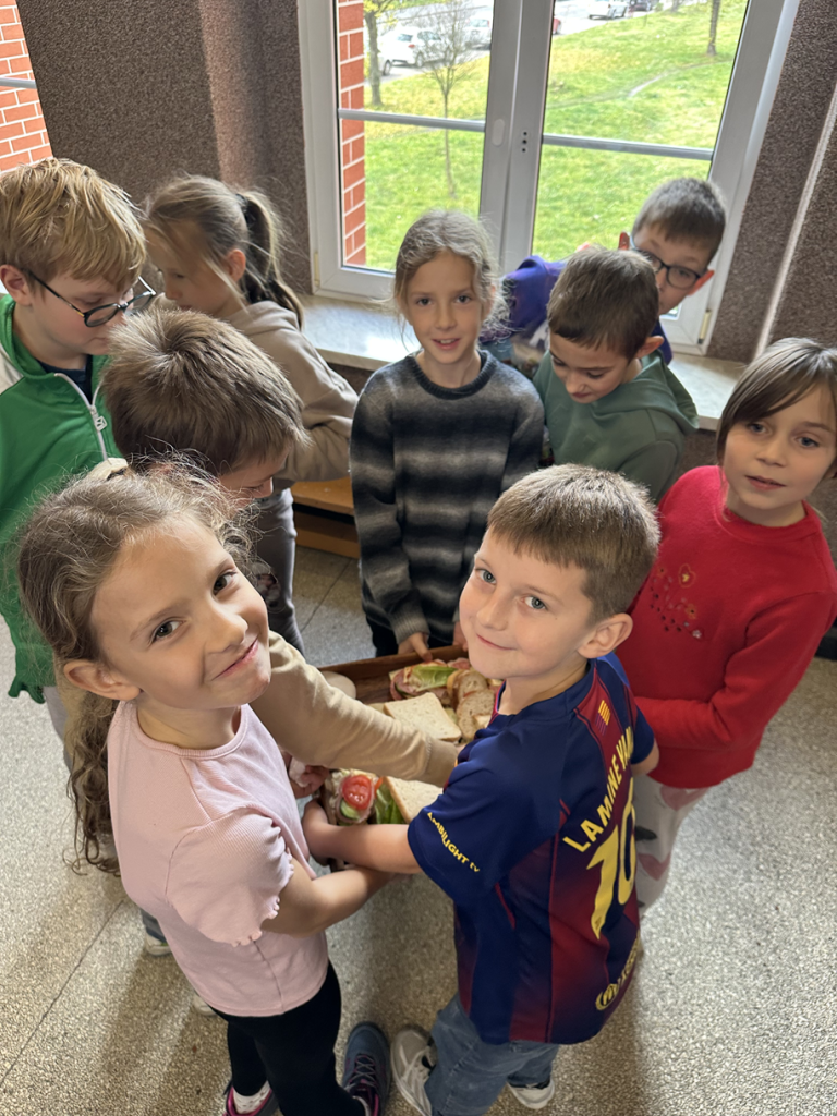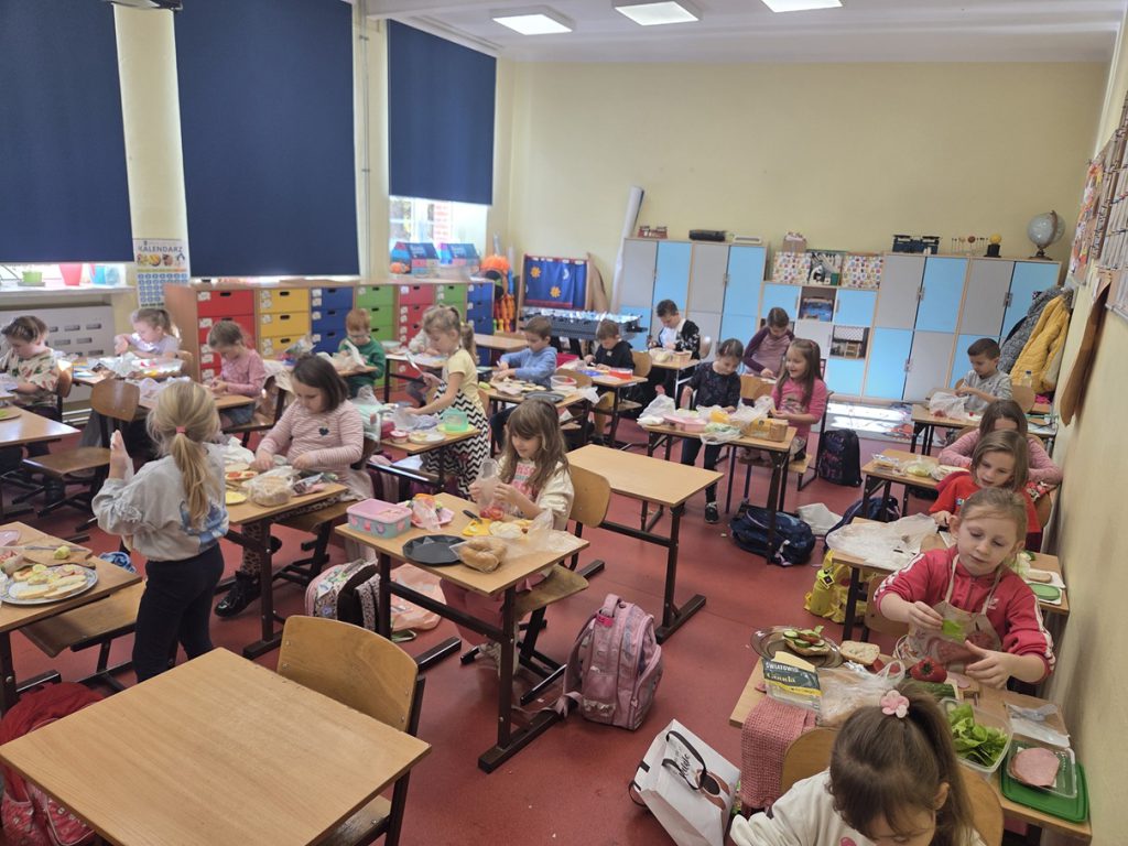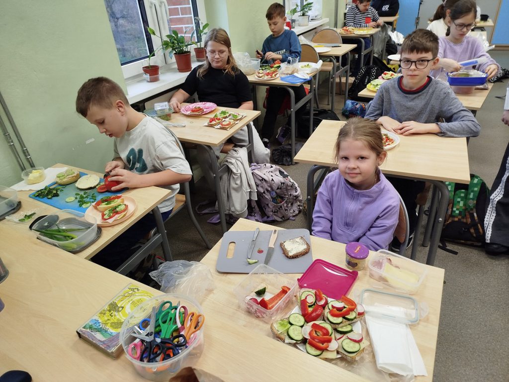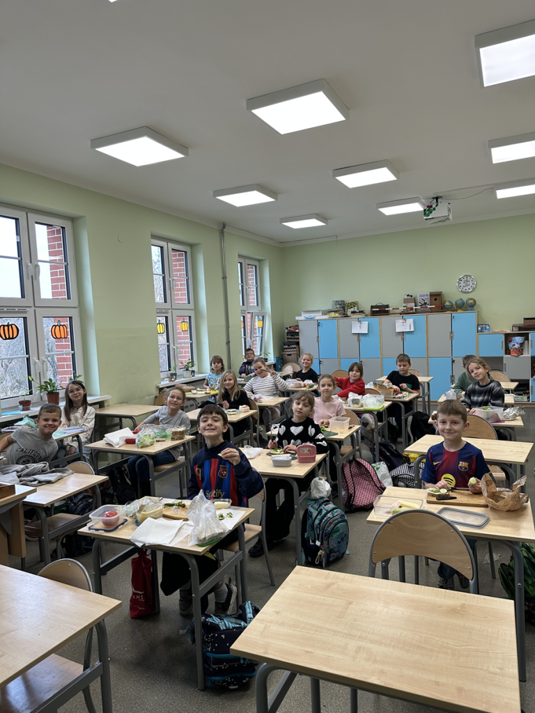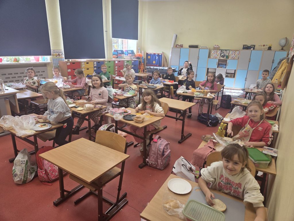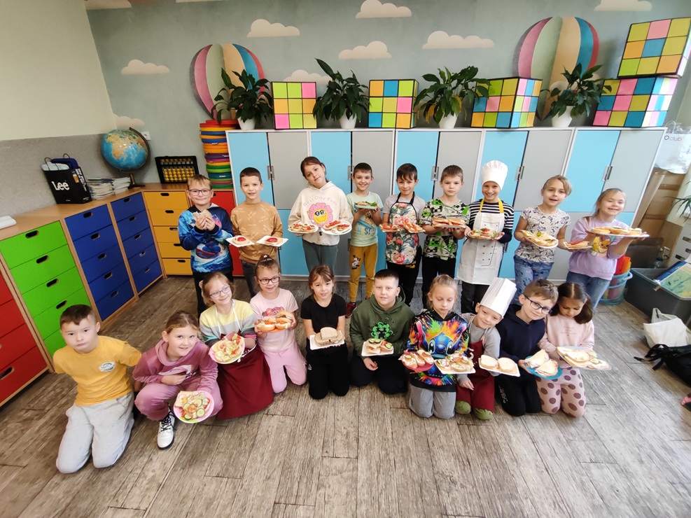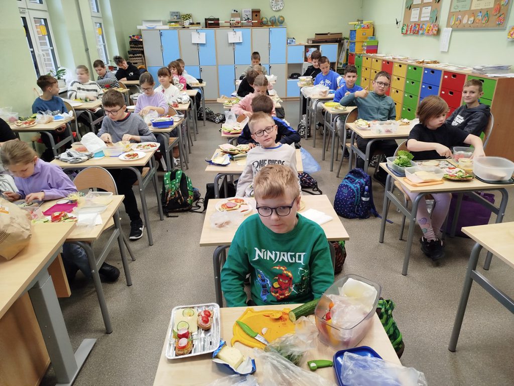 14 listopada, tak jak w latach ubiegłych, uczniowie klas młodszych włączyli się do ogólnopolskiej akcji „Śniadanie daje moc”. Podczas zajęć dzieci przypomniały sobie zasady zdrowego odżywiania oraz porozmawiały o tym, dlaczego śniadanie jest tak ważne dla prawidłowego funkcjonowania naszego organizmu. Na śniadanie przygotowały zdrowe, kolorowe kanapki z dużą ilością warzyw i dzieliły się nimi z innymi uczniami podczas przerw. Była to dla nich świetna zabawa, dzięki której zdobywali dobre nawyki żywieniowe.