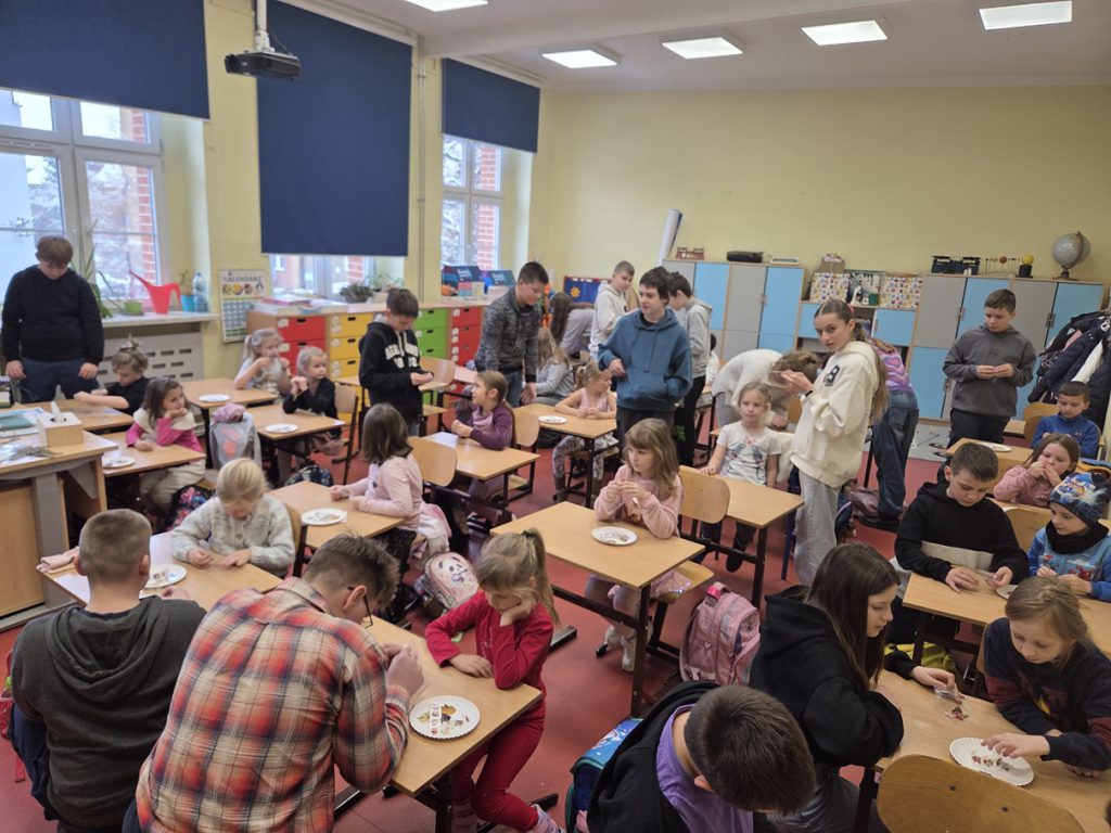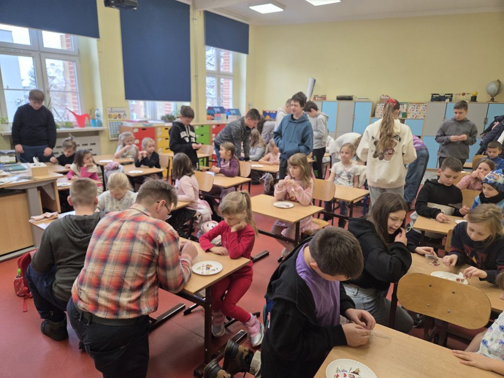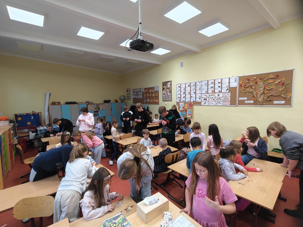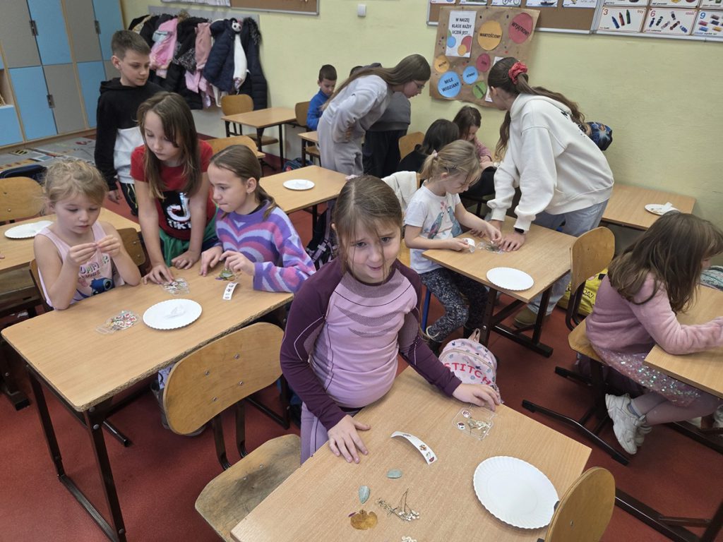 Uczniowie klas pierwszych pod opieką szkolnych opiekunów z klas szóstych mieli dziś okazję rozwijać swoje umiejętności plastyczno-techniczne. W ramach zajęć tworzyli piękne zakładki do książek, wykorzystując suszone rośliny, które starannie dobierali i układali.