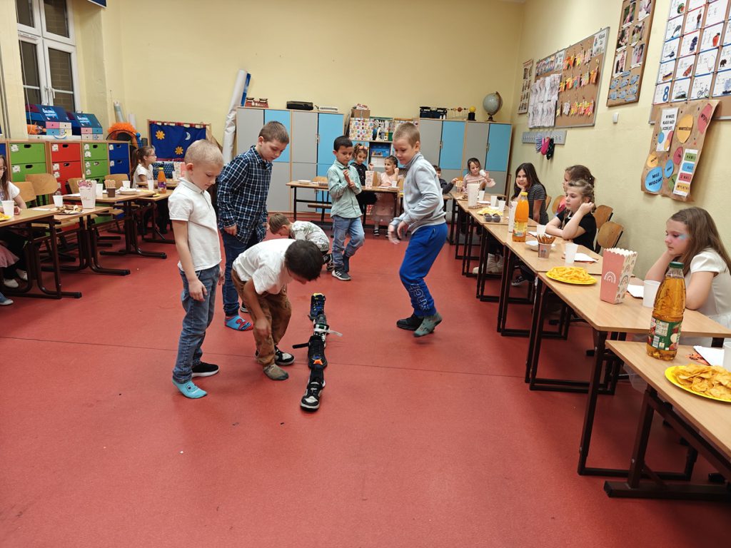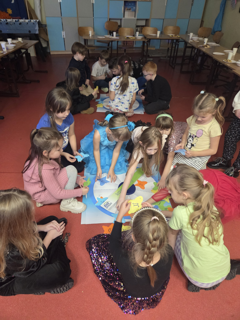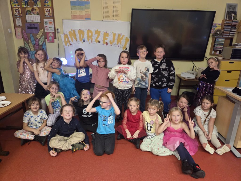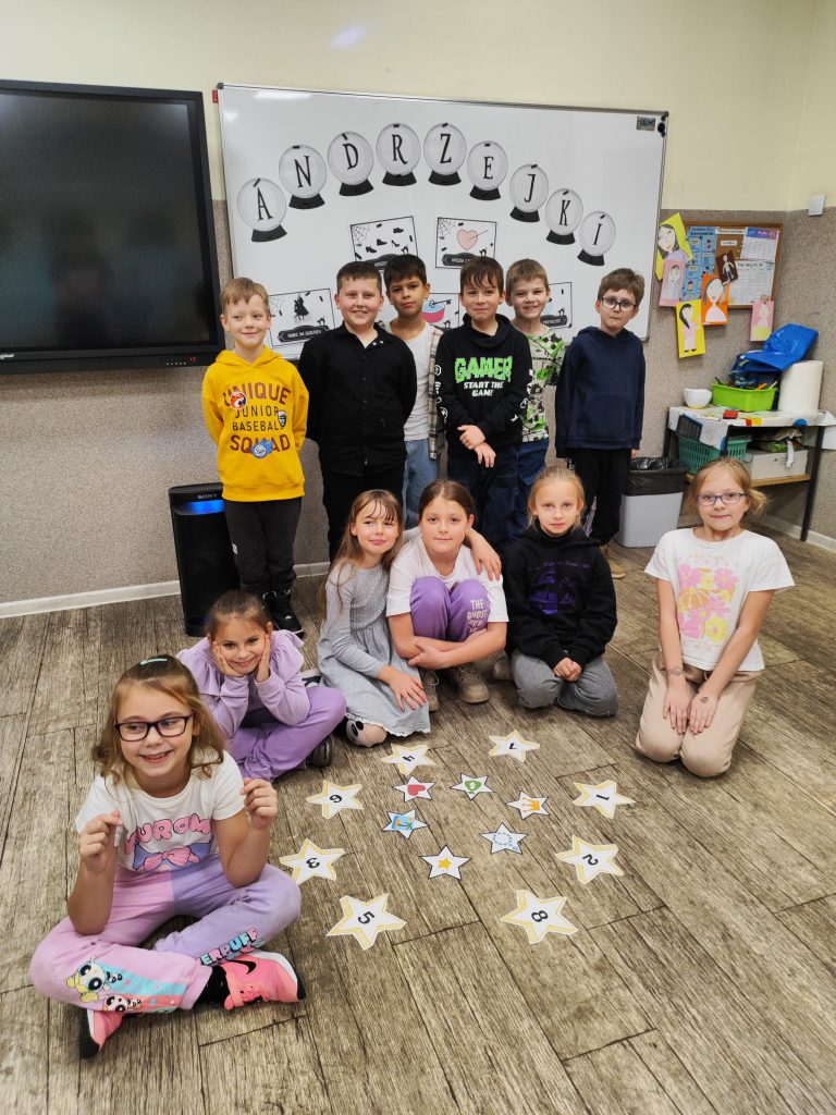 Świętowaliśmy Andrzejki, podczas których dzieci przeniosły się w świat wróżb, muzyki i wesołych zabaw. Największym powodzeniem cieszyły się wróżby, a wśród atrakcji nie zabrakło także tańców i wesołych zabaw przy muzyce! 🎶💃🕺 Dzieci chętnie brały udział w wesołych konkursach, tworzyły radosne korowody i tańczyły tak, jakby parkiet należał tylko do nich. Nie zabrakło również przekąsek 🍪🍎, które dodawały energii w przerwach między kolejnymi atrakcjami.