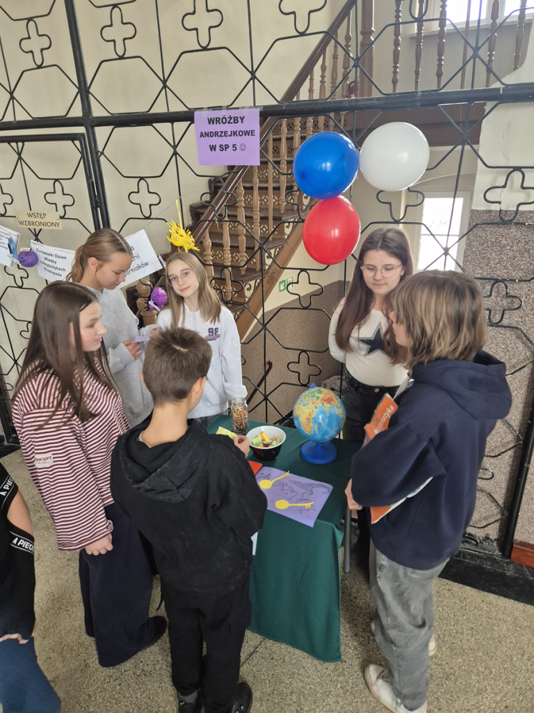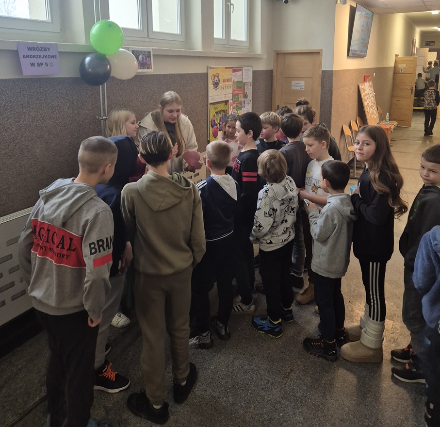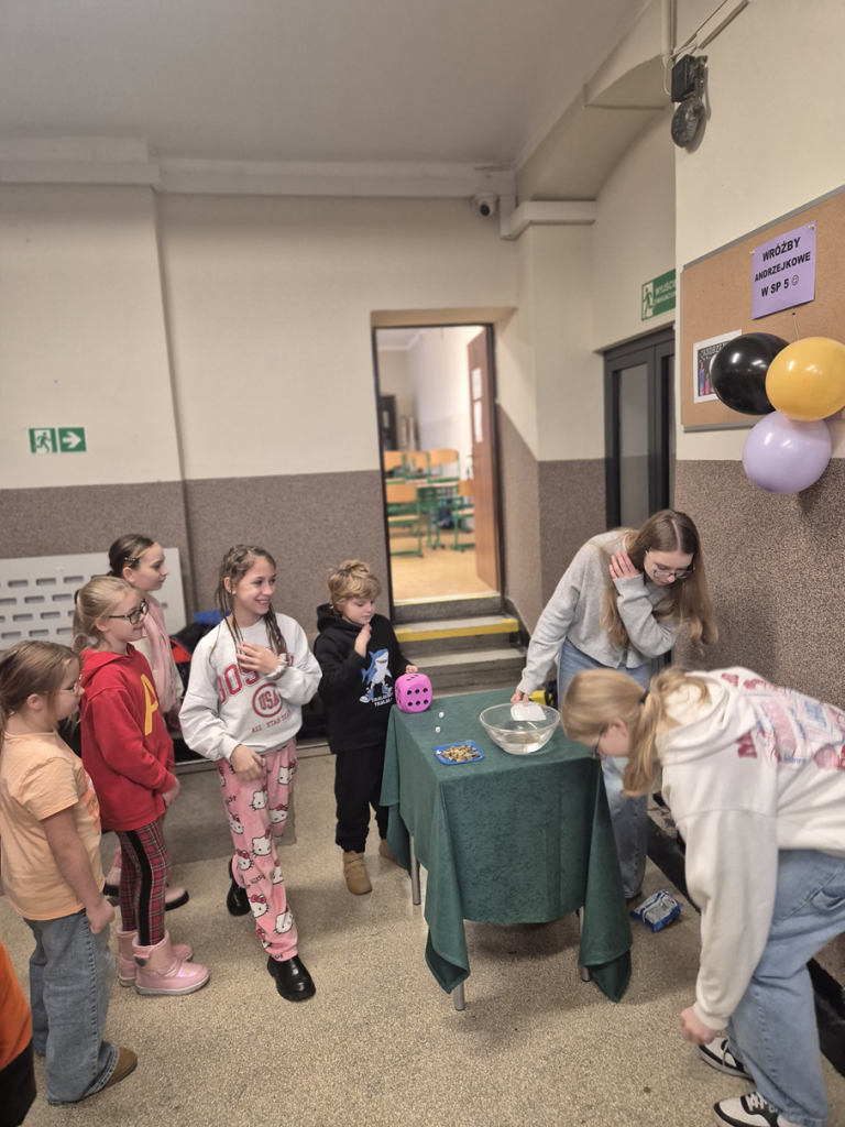 Samorząd wyszedł z inicjatywą zorganizowania wróżb andrzejkowych w trakcie przerw. Zarówno młodsi, jak i starsi uczniowie chętnie brali udział w niezobowiązujących zabawach, także tanecznych, traktując bardziej lub mniej serio wiadomość o rychłej sławie czy bogactwie 😉
