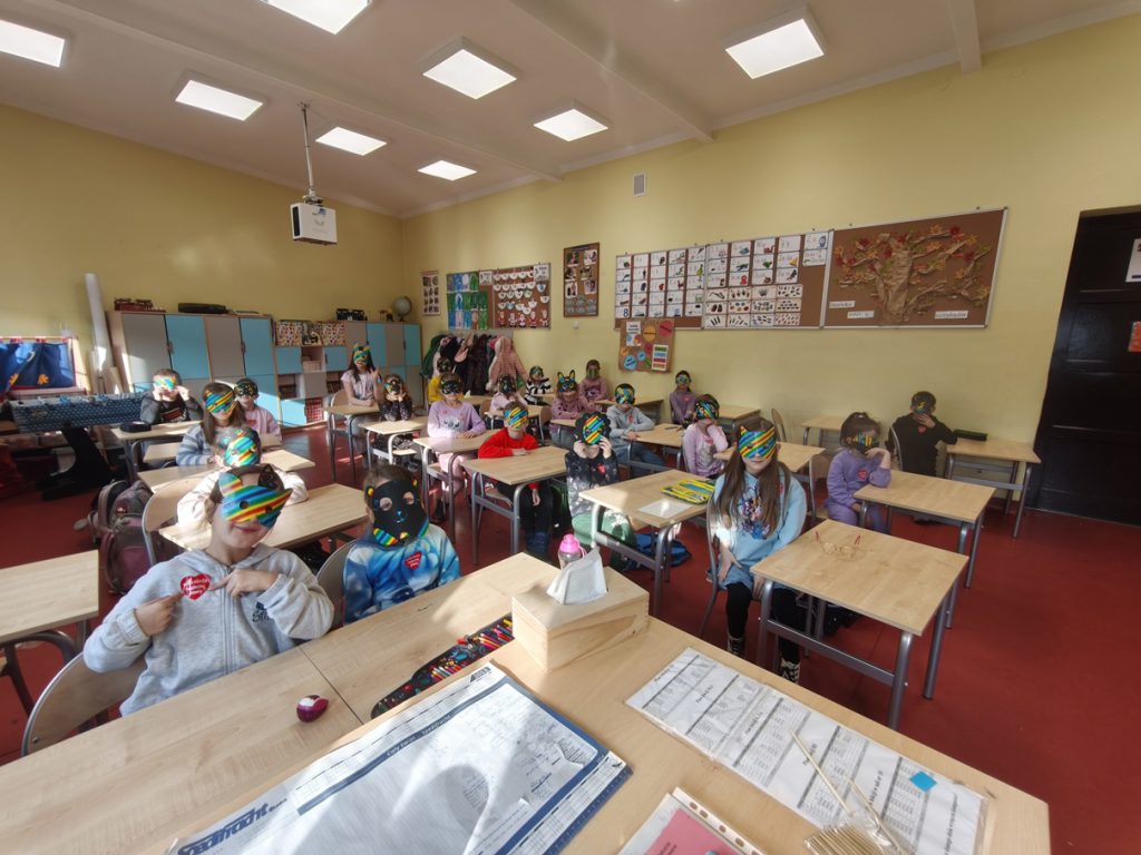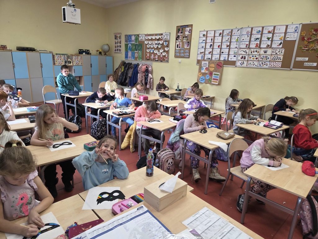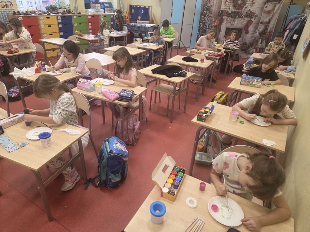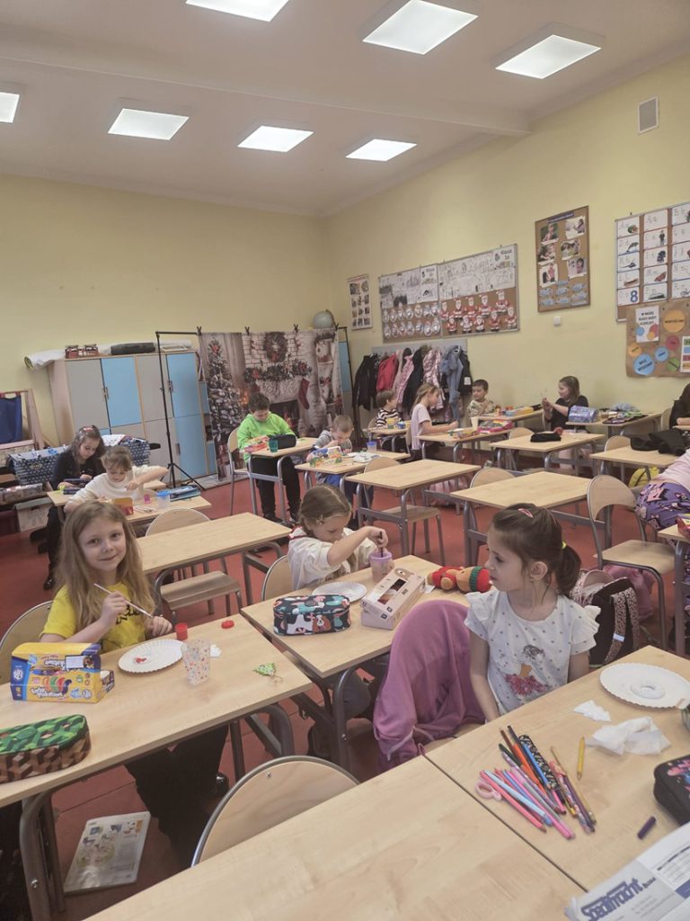 Dzieci dekorowały również gipsowe i drewniane ozdoby świąteczne, które mogły zawiesić na swoich choinkach, a także przygotowywały elementy do dekoracji swoich pokoi. Nie zabrakło także zajęć z wydzierania papieru oraz projektowania masek karnawałowych, które dostarczyły uczniom wiele radości i satysfakcji.
