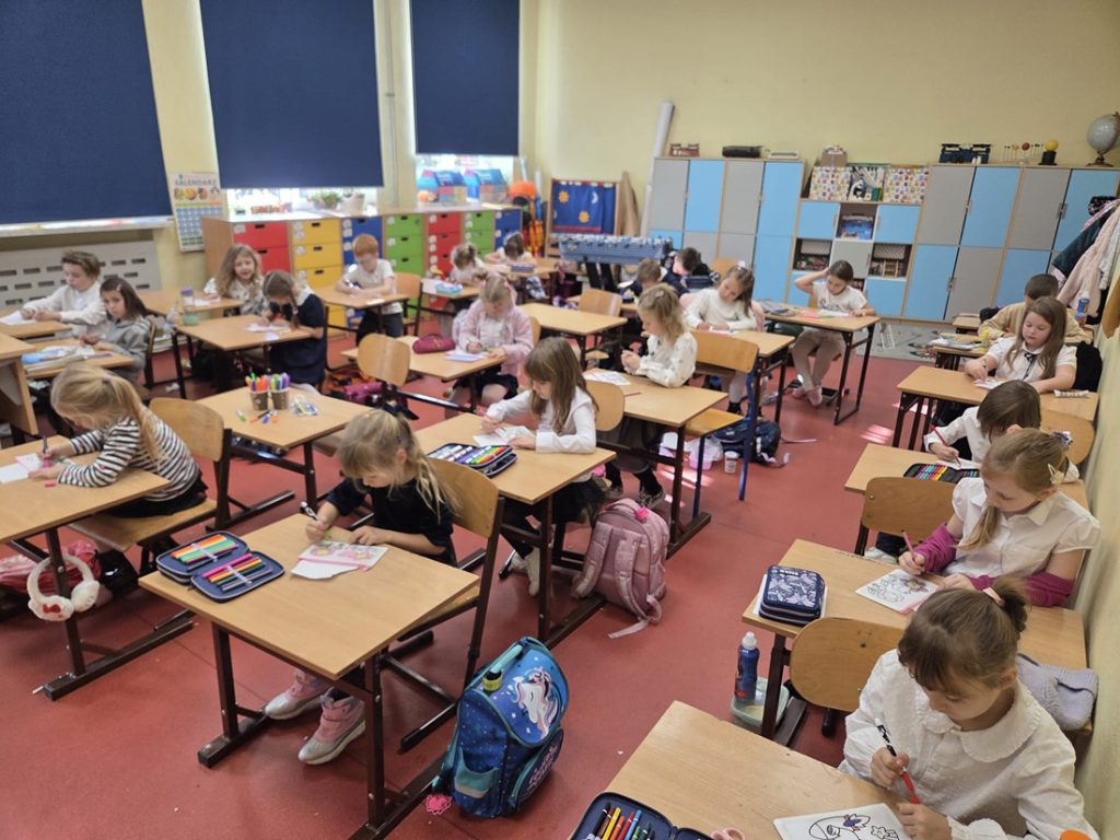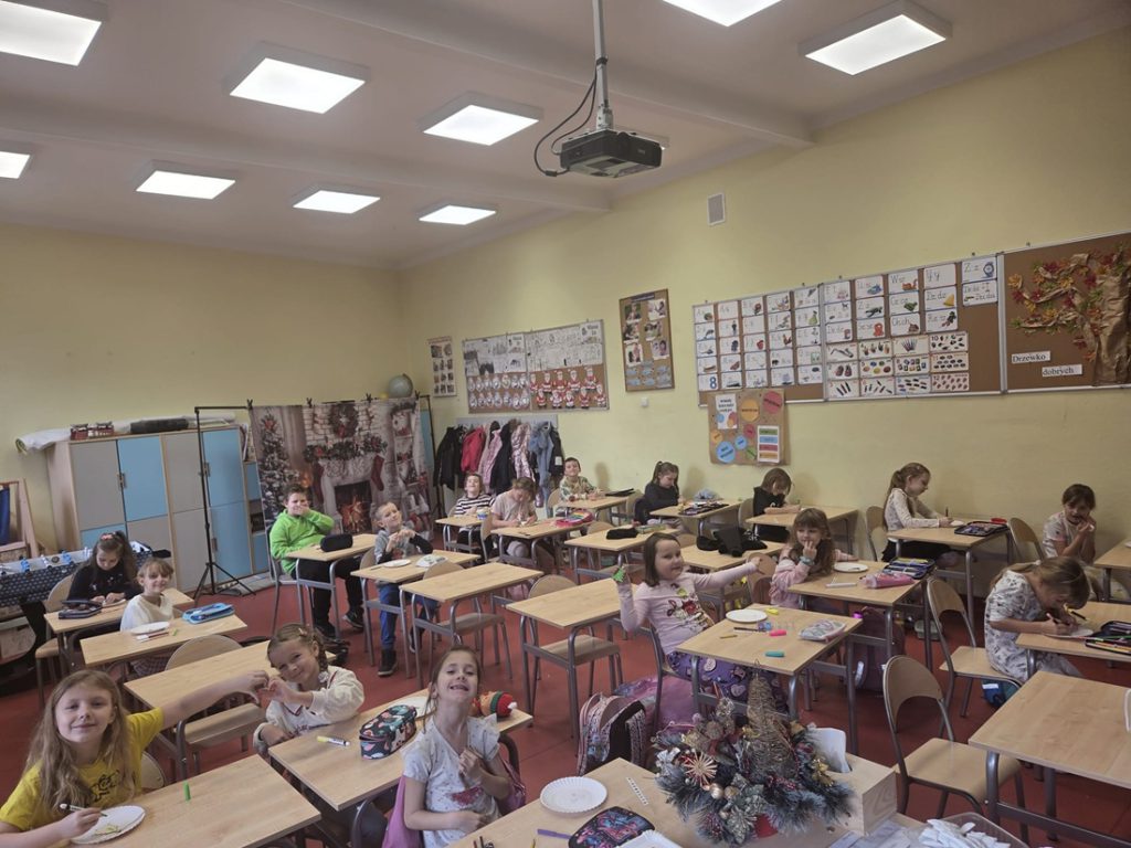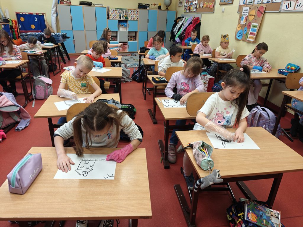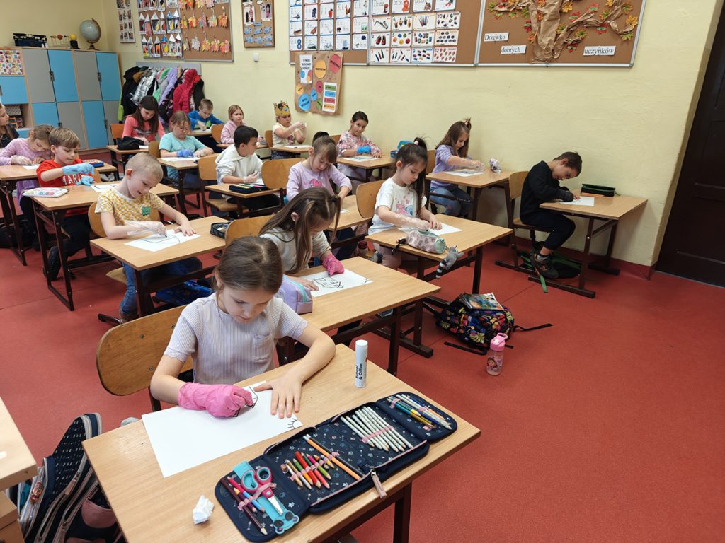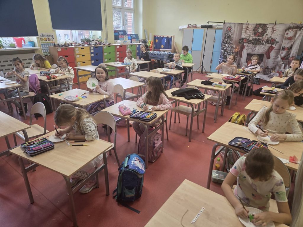 Na zajęciach kształtujących kreatywność nasi najmłodsi uczniowie mają możliwość rozwijania wyobraźni, zdolności manualnych oraz wrażliwości estetycznej poprzez różnorodne działania plastyczno-techniczne. W ostatnich tygodniach pierwszoklasiści z dużym zaangażowaniem malowali kredą węglową, pisali listy do Świętego Mikołaja, a także kolorowali i ozdabiali mikołajkowe torebki, tworząc ciekawe i harmonijne kompozycje kolorystyczne.