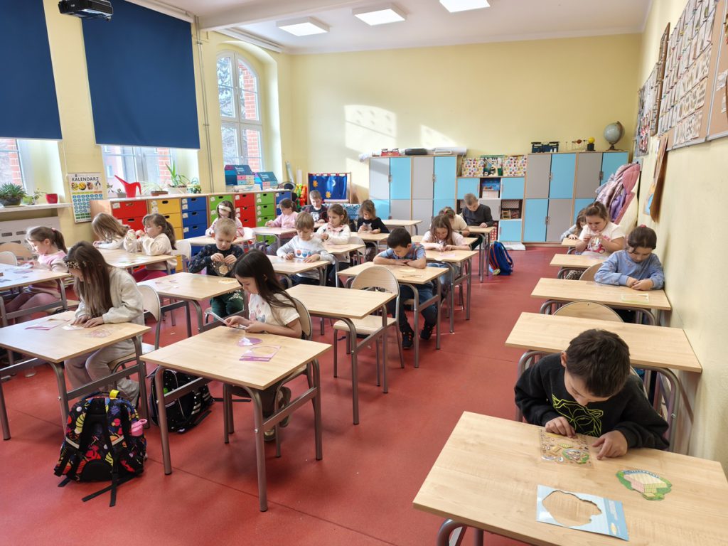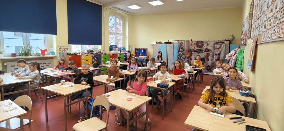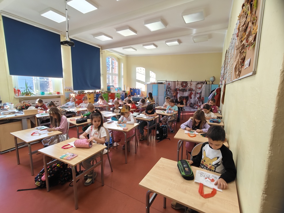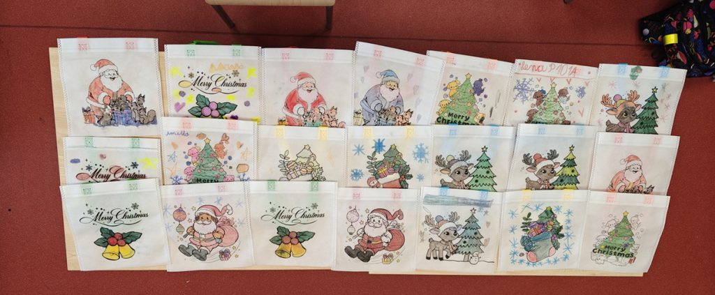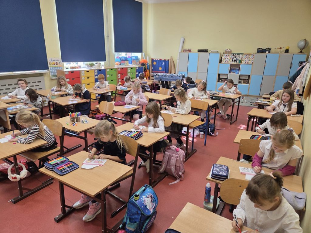 Na zajęciach kształtujących kreatywność nasi najmłodsi uczniowie mają możliwość rozwijania wyobraźni, zdolności manualnych oraz wrażliwości estetycznej poprzez różnorodne działania plastyczno-techniczne. W ostatnich tygodniach pierwszoklasiści z dużym zaangażowaniem malowali kredą węglową, pisali listy do Świętego Mikołaja, a także kolorowali i ozdabiali mikołajkowe torebki, tworząc ciekawe i harmonijne kompozycje kolorystyczne.