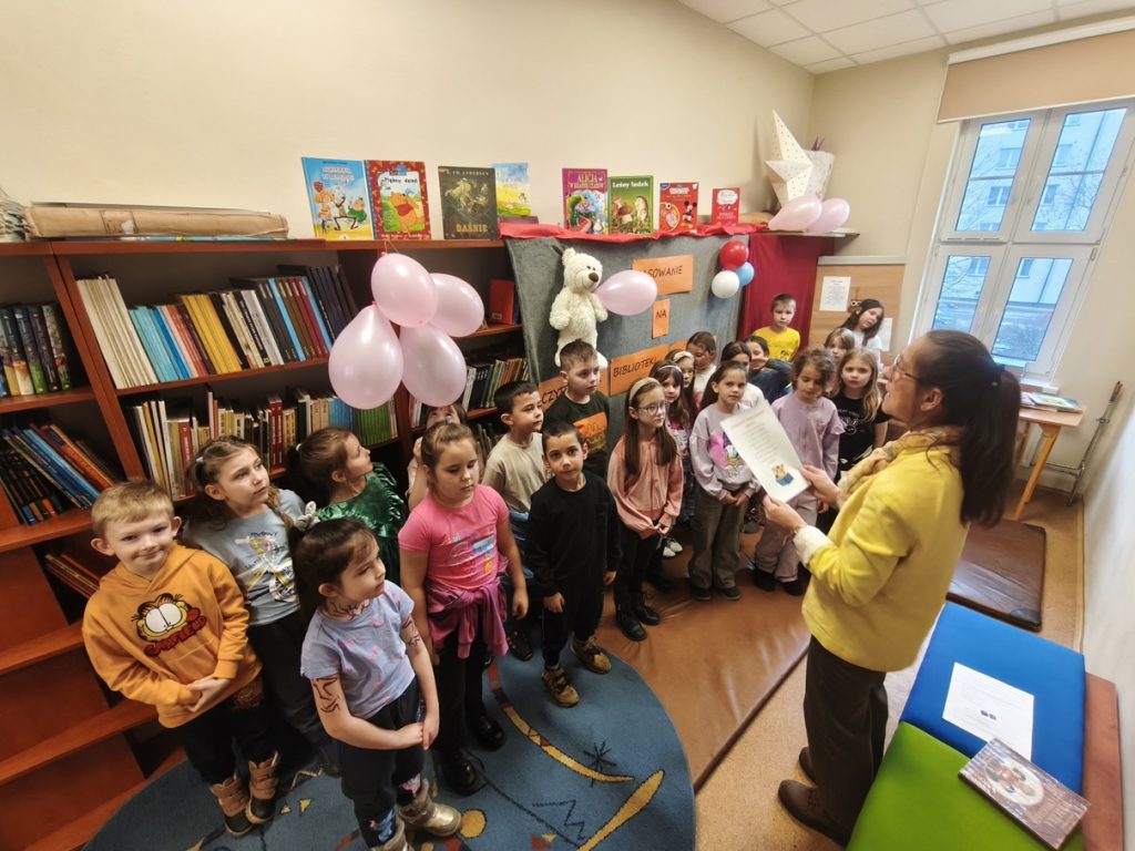 W bibliotece szkolnej odbyło się uroczyste pasowanie uczniów klas pierwszych na czytelników biblioteki szkolnej. Celem spotkania było zapoznanie najmłodszych uczniów z zasadami korzystania z biblioteki oraz zachęcenie ich do systematycznego czytania książek.