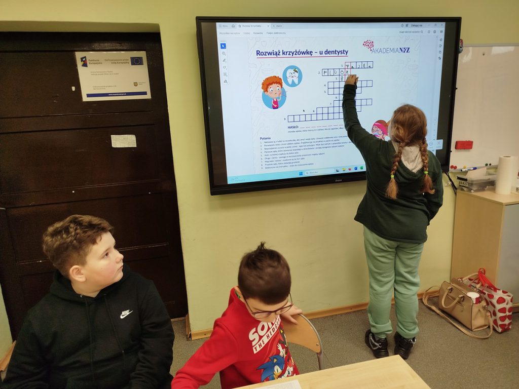 O tym, że higiena osobista i otoczenia ma duże znaczenie dla naszego zdrowia, przekonali się uczestnicy zajęć „Moje zdrowie w moich rękach” realizowanych w ramach unijnego projektu Wkręć się w naukę. Dzięki różnorodnym formom pracy (filmy edukacyjne, zagadki, krzyżówki, interaktywne ćwiczenia, zadania praktyczne oraz online) uczniowie w przystępny sposób utrwalili i poszerzyli swoją wiedzę na temat konieczności dbania o higienę osobistą. Najpierw po obejrzeniu prelekcji pielęgniarki Magdy, (z cyklu „Książkowe pogadanki pielęgniarki”), ustaliliśmy podstawowe zasady higieny. Rozmawialiśmy o konieczności dbania o czystość ciała, bielizny, odzieży, odpowiednią ilość snu, odpoczynku i ruchu, myciu warzyw i owoców przed zjedzeniem, wietrzenia i utrzymywania w czystości pomieszczeń w których przebywamy. Dowiedzieliśmy się w jakich sytuacjach obowiązkowo trzeba myć ręce, oraz jak to robić dokładnie, aby nie narazić swojego organizmu na choroby brudnych rąk. Wiersz J. Brzechwy „Natka Szczerbatka” w żartobliwy sposób wprowadził nas w temat higieny jamy ustnej. Wiemy już, że nie tylko regularne mycie zębów jest ważne, ale trzeba zwracać uwagę na sposób i czas szczotkowania. Poznaliśmy pracę dentysty i dowiedzieliśmy się do jakiego specjalisty udać się w razie problemów z naszym uzębieniem. Aby wyrobić nawyk dbania o zęby każdy uczeń otrzymał „tygodniowy grafik mycia zębów”. Na zakończenie zajęć uczniowie zgodnie stwierdzili, że codzienne dbanie o higienę osobistą i otoczenia ma ogromny wpływ na nasze zdrowie i samopoczucie. Zdobyta wiedza oraz wykonane ćwiczenia uświadomiły im, że proste, regularnie wykonywane czynności pomagają zapobiegać chorobom i sprzyjają zdrowemu stylowi życia. Zajęcia były dla uczestników nie tylko cenną lekcją, ale także inspiracją do świadomego dbania o siebie każdego dnia.